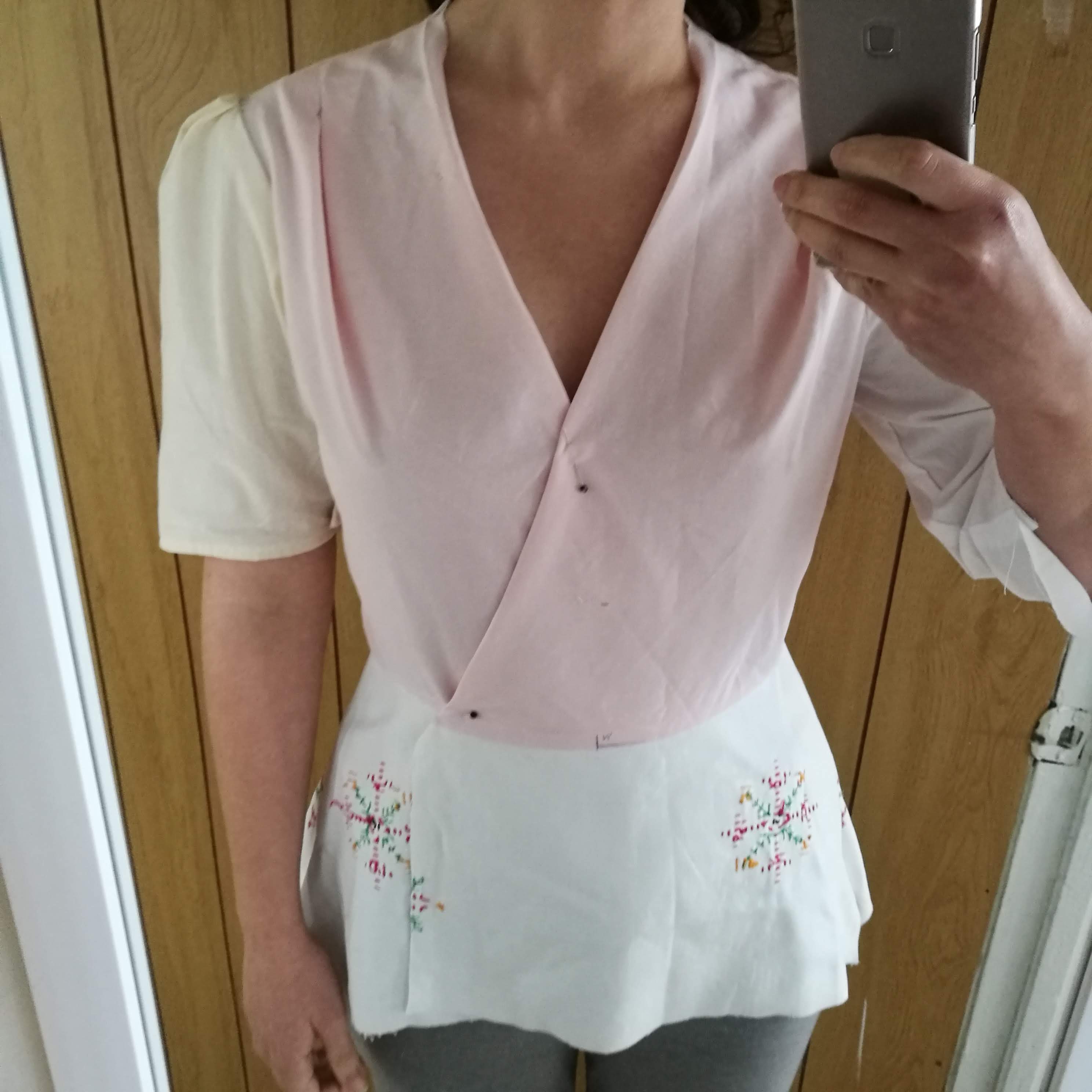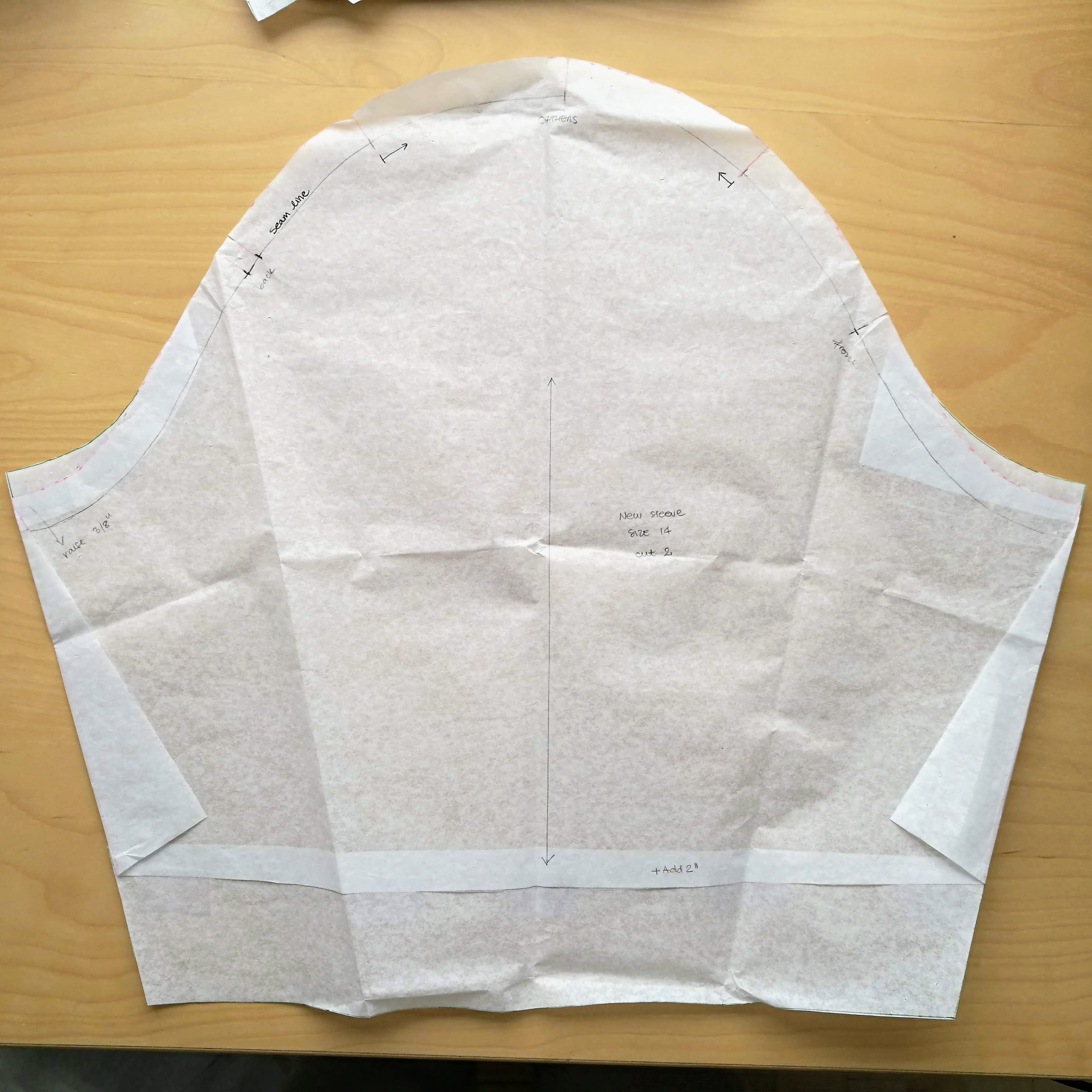 The Zenith sleeve is meant to be quite wide at the bottom, so I took in 1 3/4” from each side (folded on the left picture) and lengthened it by 2″.