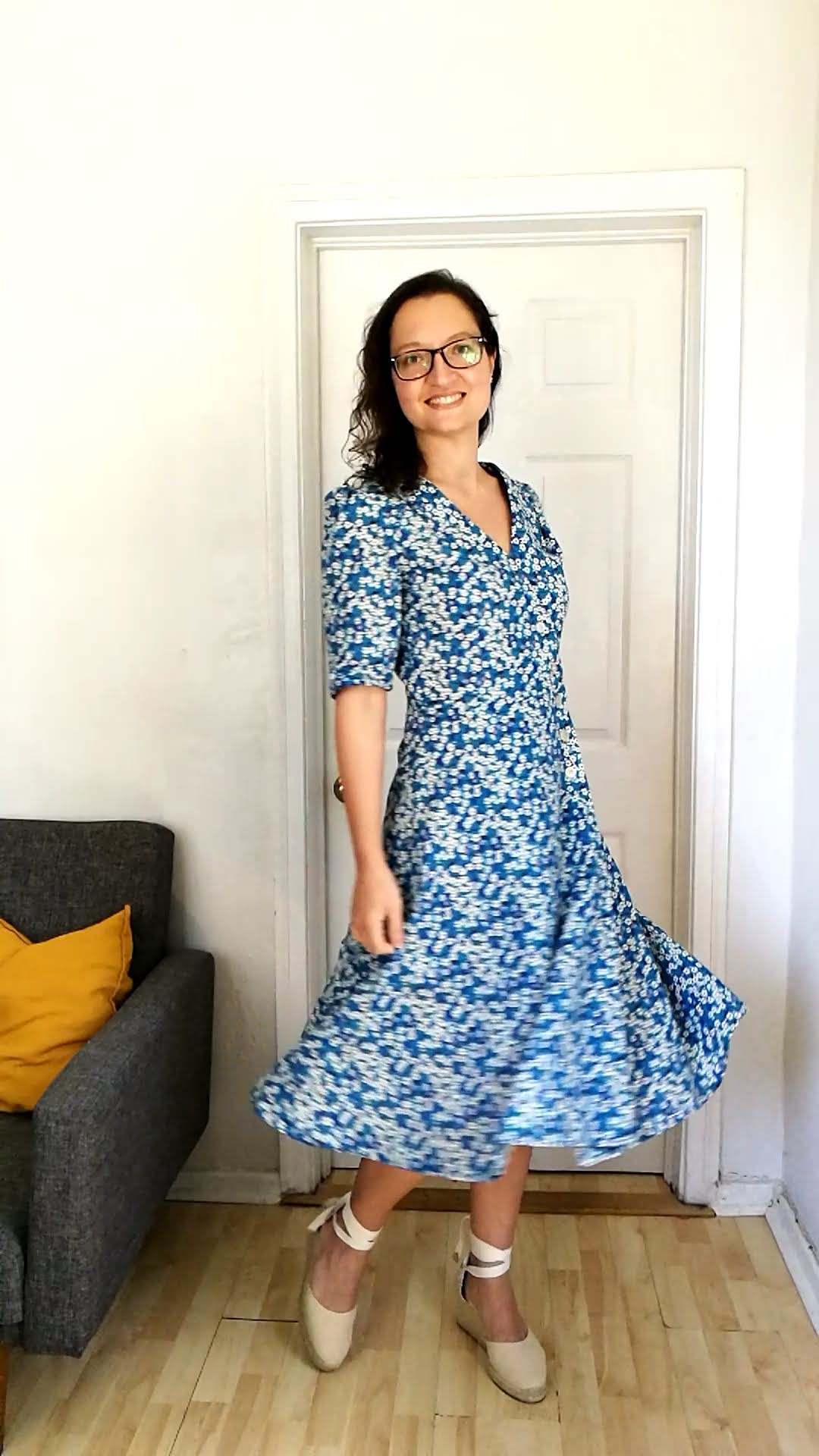 I’ll start by saying that I love this dress. The fabric is gorgeous, lightweight not see-through and the shape is timeless (at least for me). If you read last week’s post this was in my plans for this month, and I decided to start with the dress because the weather seemed perfect for it. Seemed…because right now there are something like 45 F (7C) outside!