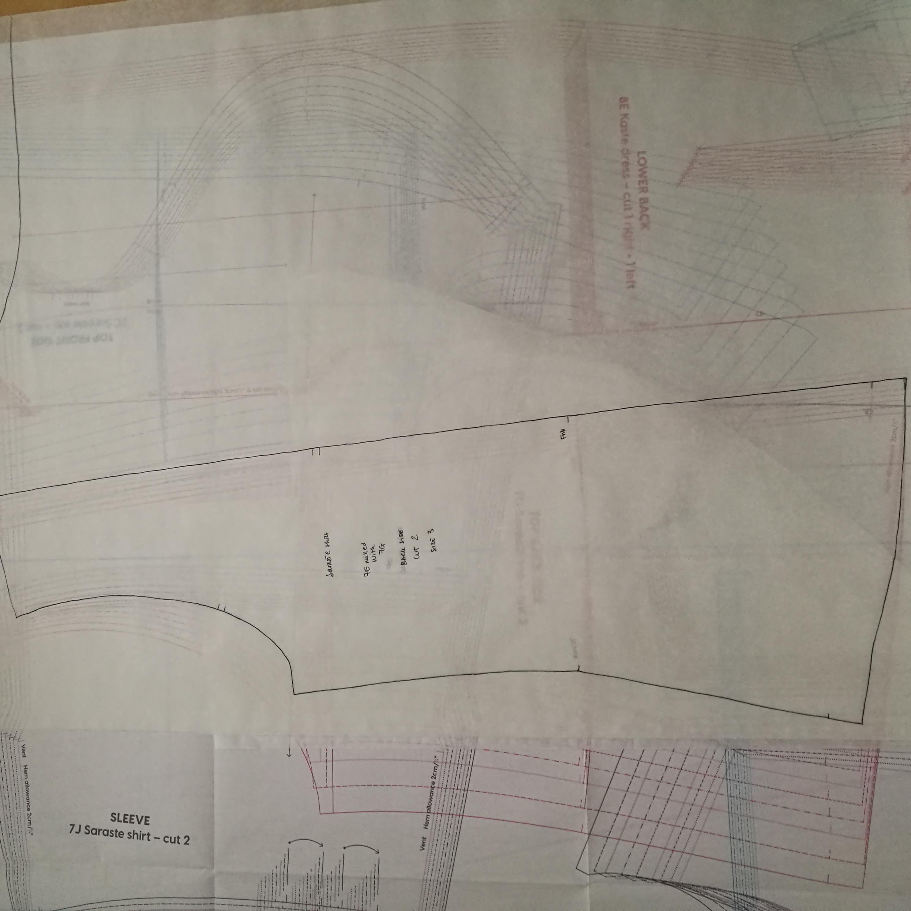 If you have the book for reference I cut out pieces: 7A x2, 7B x2, 7F on the fold, 7N x4 (I traced only half of the width, and reduced the width of the ruffles further by 5/8”), 7G x2 changing the side edge (connected to piece 7B) by copying the one of piece 7E (see picture below), 7L x 1.
