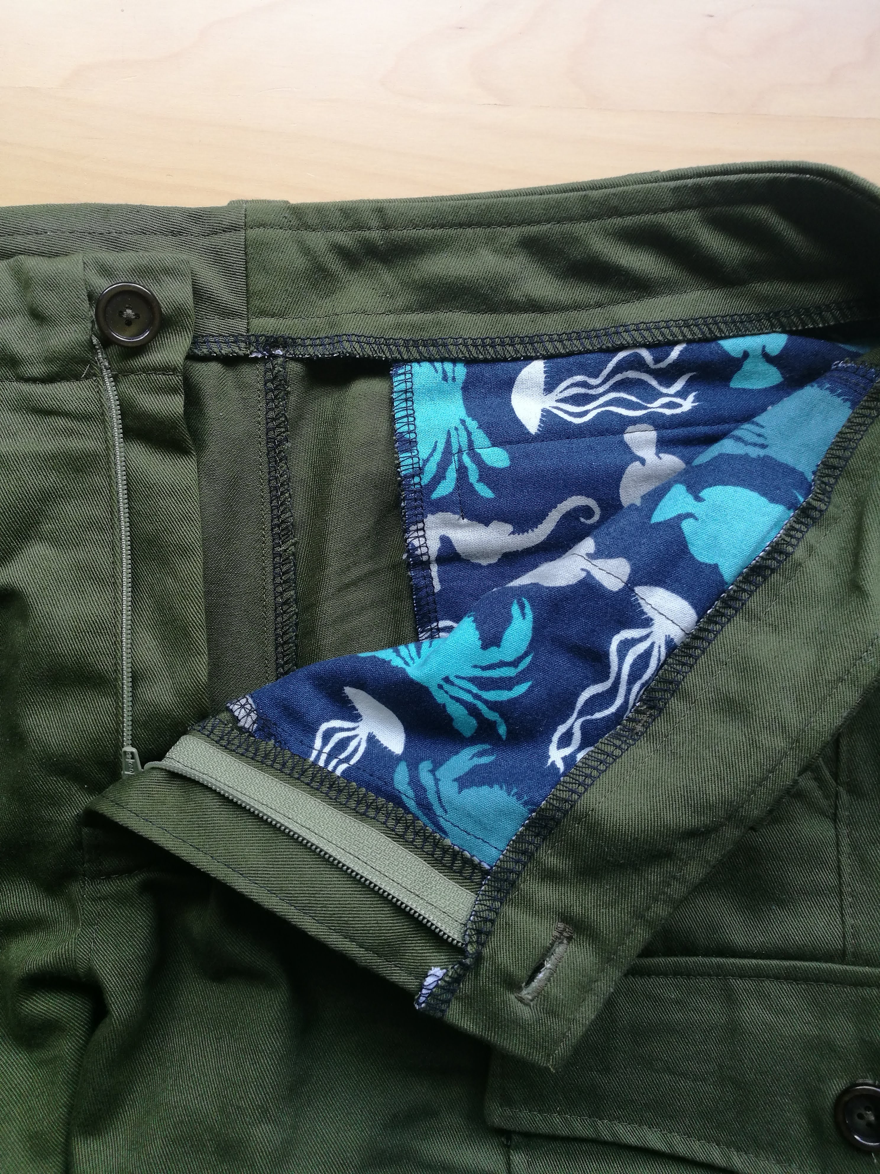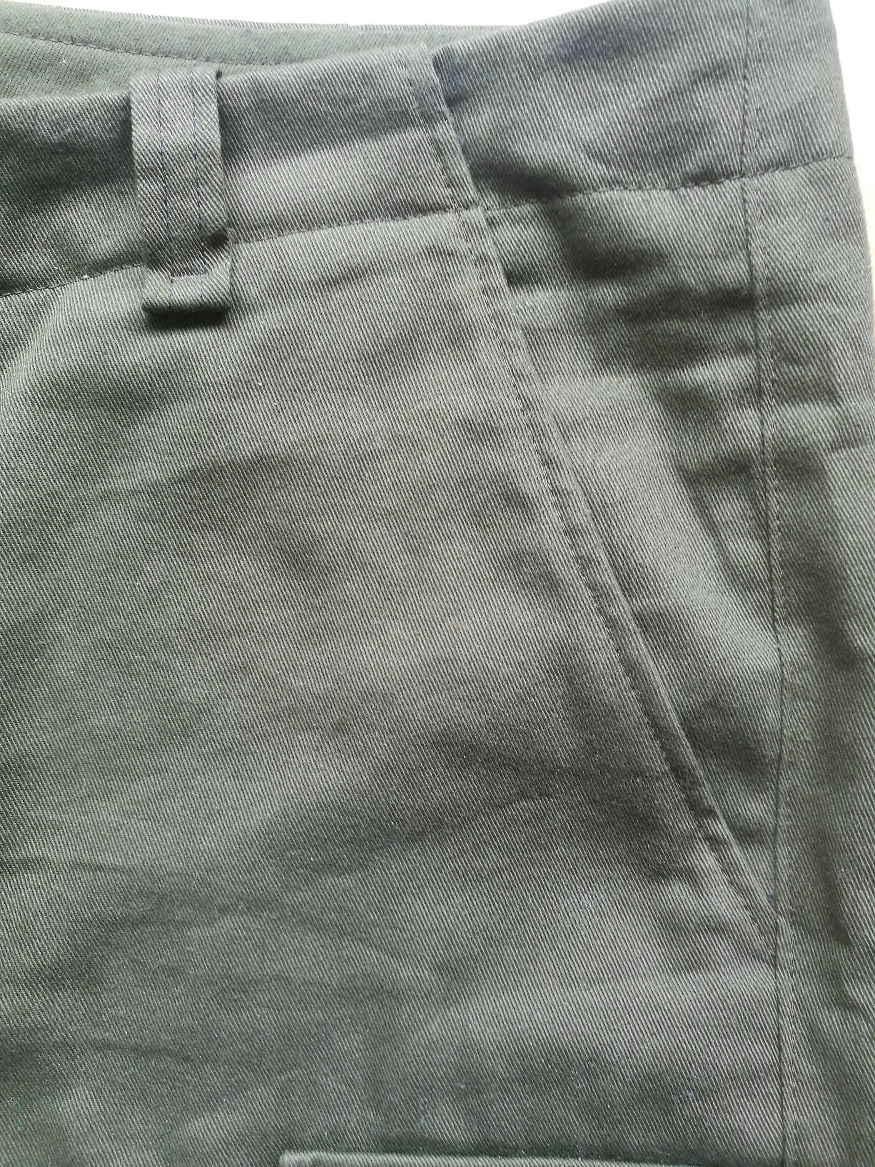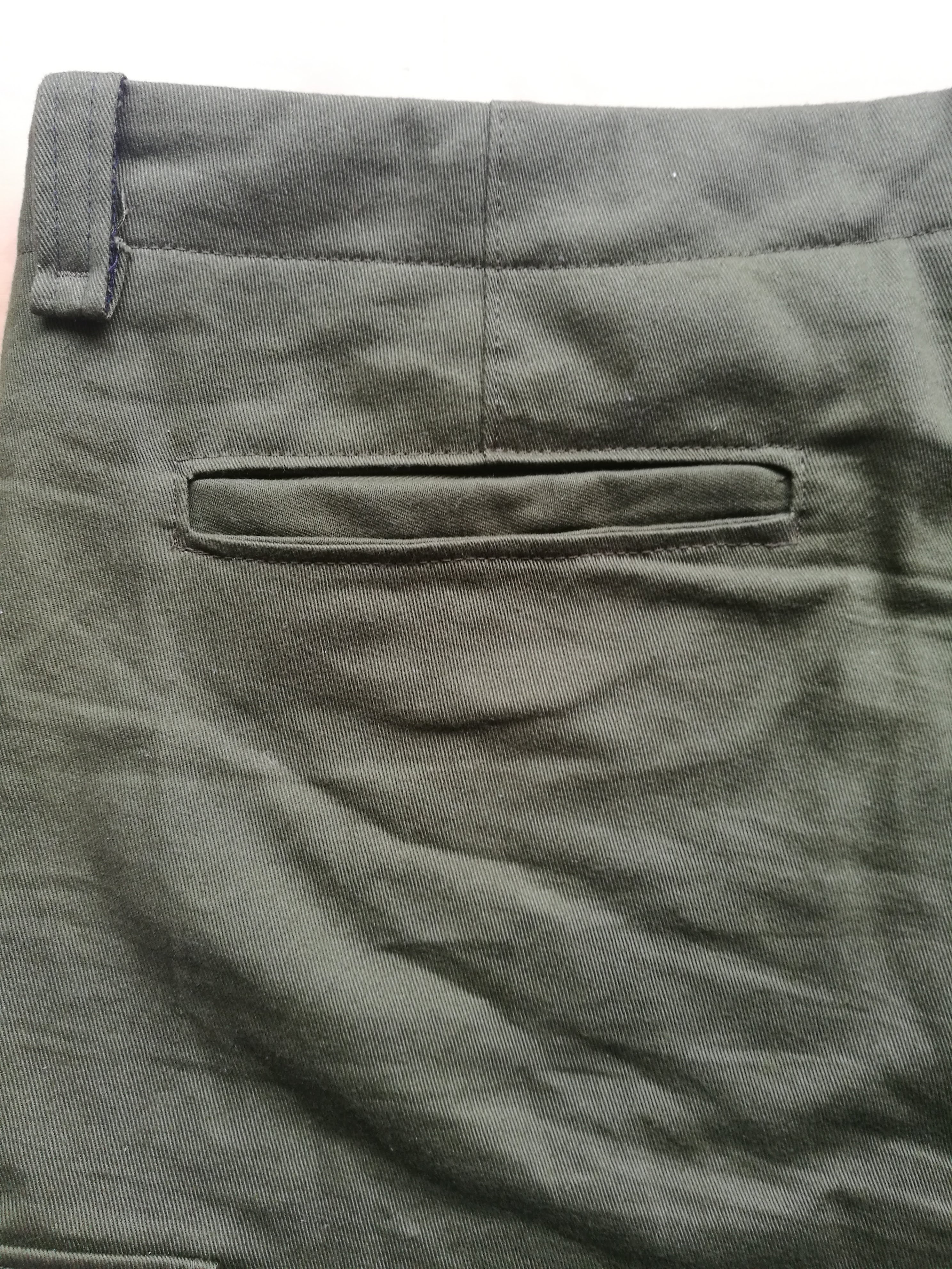 I choose a pattern that I really like, the Cargo Shorts by Wardrobe by me. The pattern comes in men sizes 27-36 and in two versions: cargo shorts with reinforced back and a classic version without pleated side pockets. Both version have welt and side pockets. This pattern is full of details, so it’s not a quick make, but I personally really enjoy patterns with a lot of small steps (I guess that’s why I like to make button up shirts). For both versions the shorts didn’t require basically any alteration, I just took in 3/8” (1 cm) on the side seams from my friend’s one. The instructions are really good, and they’re supported by thematic videos on youtube. I recommend the one on constructing the welt pocket and the zipper. The latter is my reference when I want to change zipper construction to have a built-in fly.
