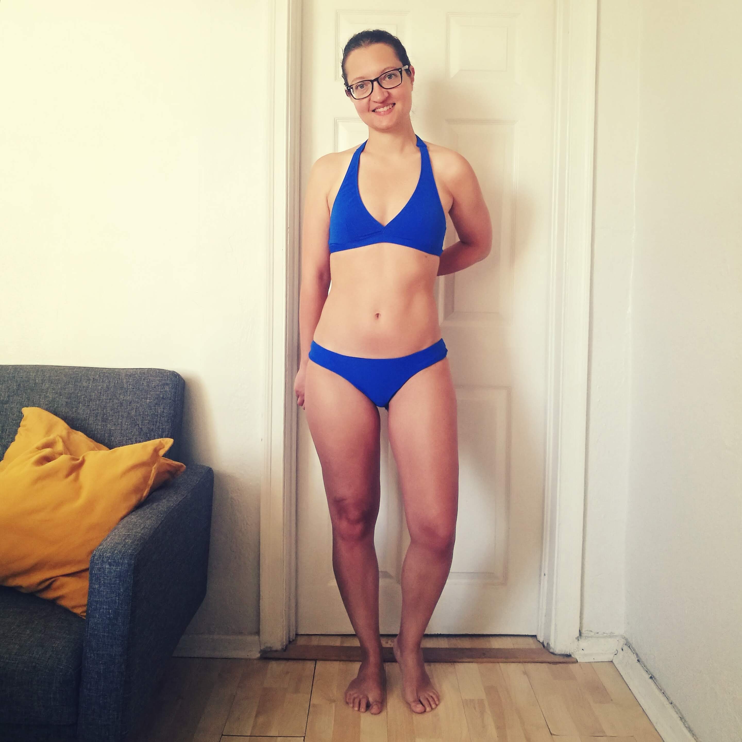 I used a swimwear fabric bought last year on Stylemakerfabrics.com in a very nice royal blue, while I bought rubber swimwear elastic on Etsy. I still have a lot of leftover fabric, considering that I made the bottoms at least 3 times. The only edit that I made to the pattern is that I stitched together the cups at the center because the top was opening too much. And here is the result, I tested it these past few days at the beach and it is holding up.