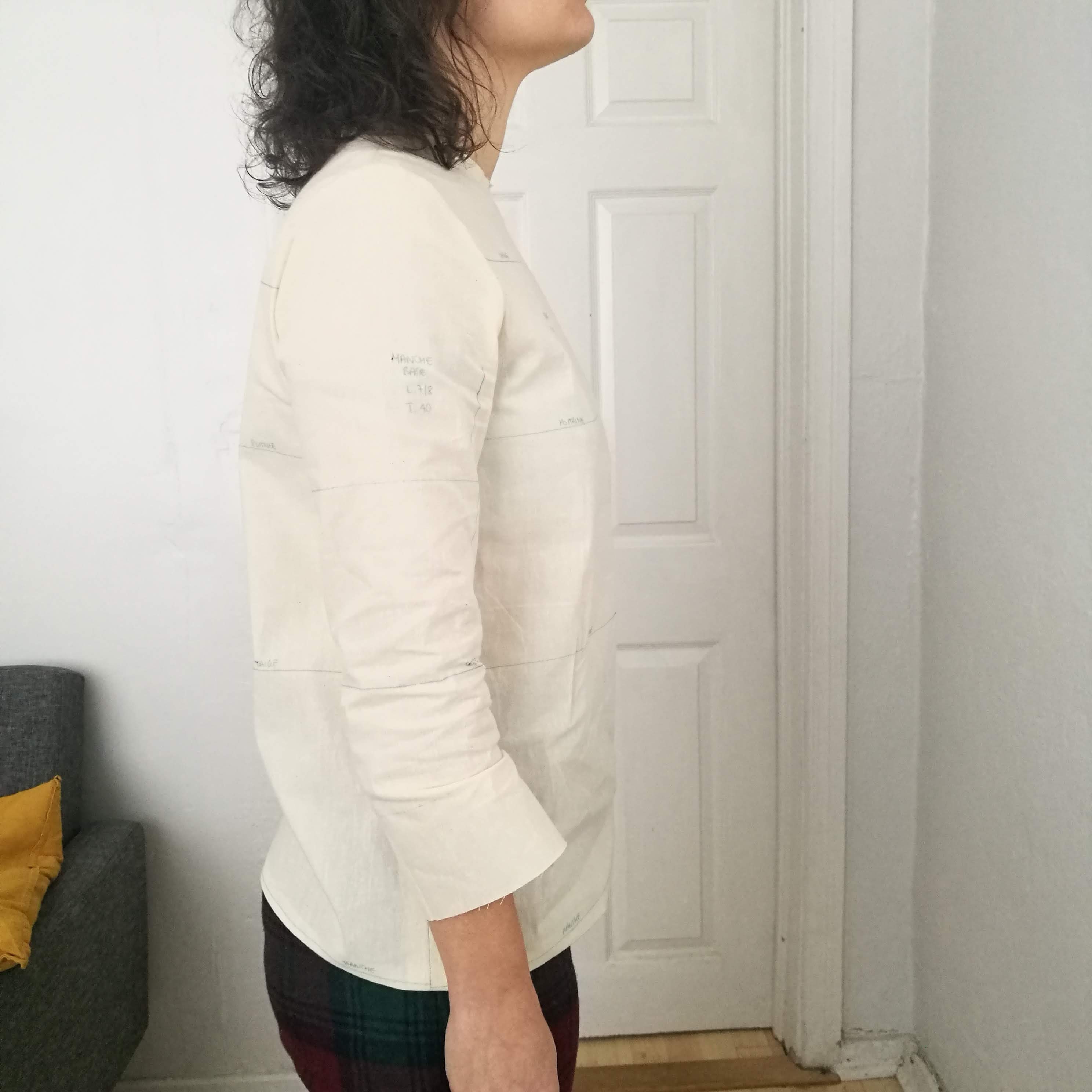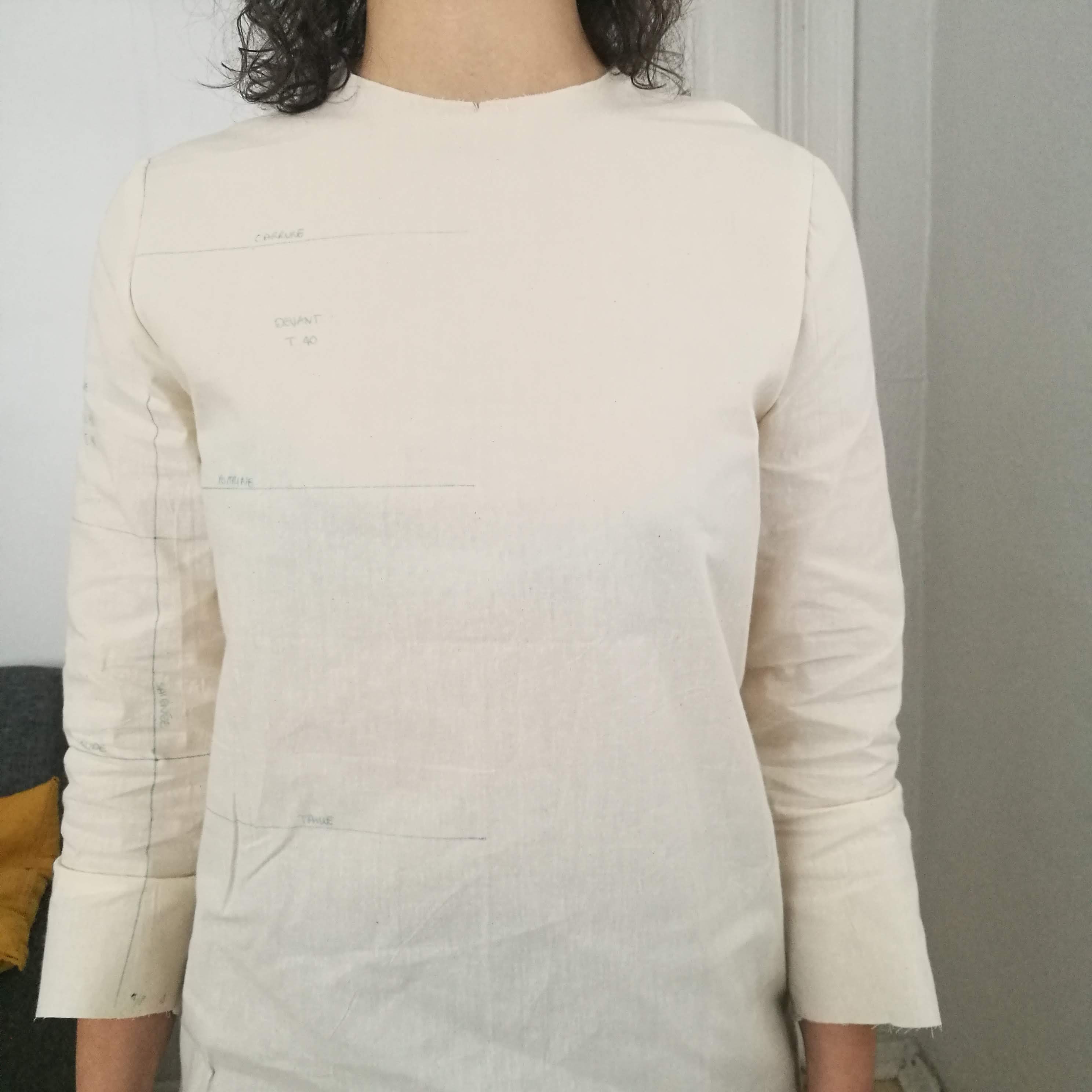 The fit was pretty good actually, the bust, waist and hip line was spot on. The only issue was that I was feeling my shoulders as if they were compressed, and the movements were not fluid, but restricted. I knew I needed to adjust the shoulder fit and give more space at the level of the chest line (ligne de carrure, the second line from the top).