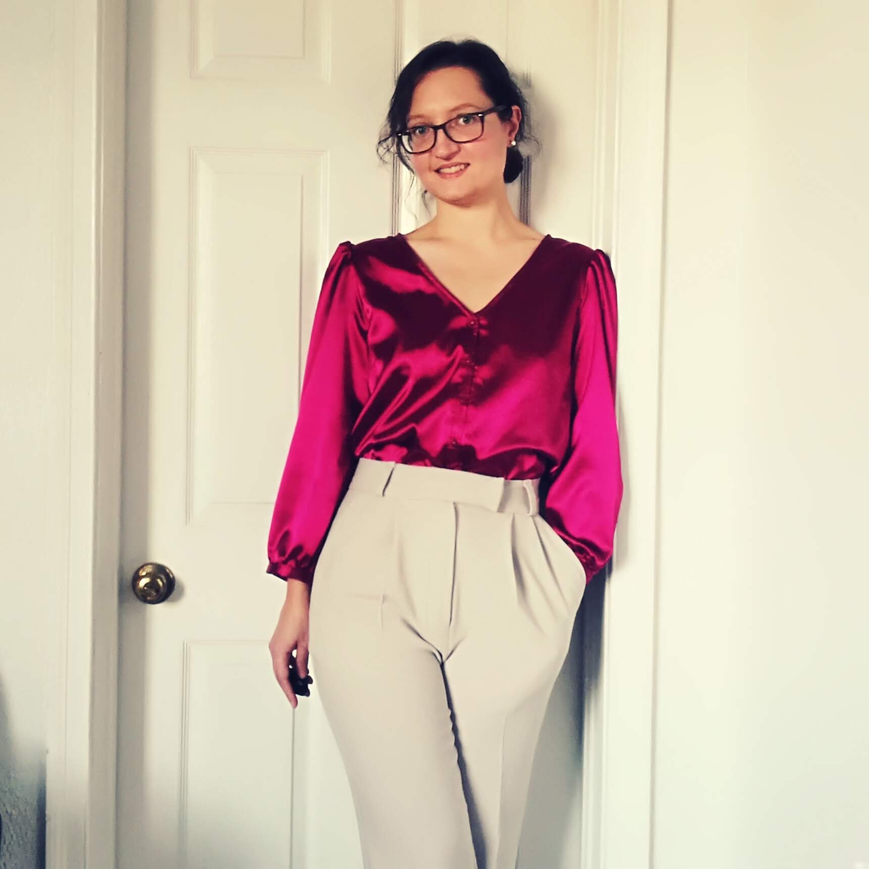 This is the final step! As I mentioned above, the book gives step by step instructions for different finishes. The only thing that requires a little bit of time is figuring out the sewing order. For this I highly recommend to follow Atelier Scammit on Youtube. For example for my blouse, I followed the Zoe tutorial, changing only the sleeve steps. I really enjoyed the sewing process, and the finished level of my blouse. I don’t think I’ve ever made a blouse that looks as good inside and outside: the side seams are with french seams, and I’m particularly proud of my bias binding, an old silk tie that belonged to my grandpa. And voilà my blouse!