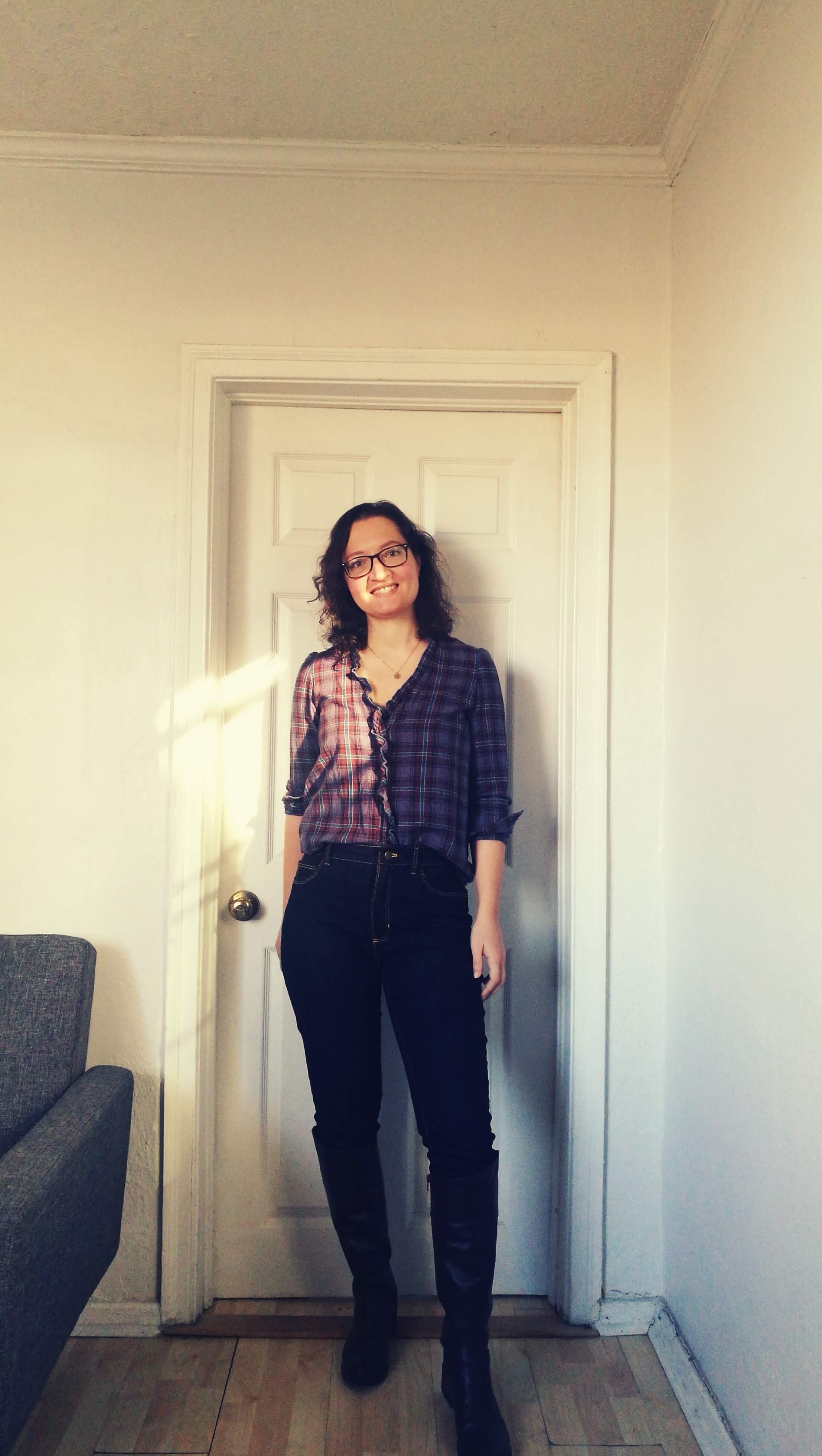 - Checkered shirt Sézane inspired (€12 in fabric) – I hacked the Nellie top by République du Chiffon by adding long sleeves. I made a size 40 as usual.