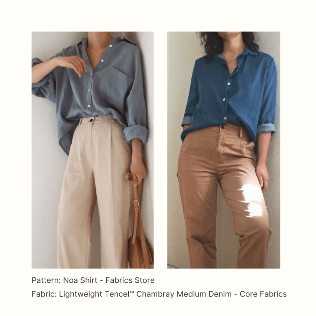 - Fabric: 1.5 yards of Lightweight Tencel™Chambray – Medium Denim (57” wide) from Core Fabrics $26.40 (I got it on sale).