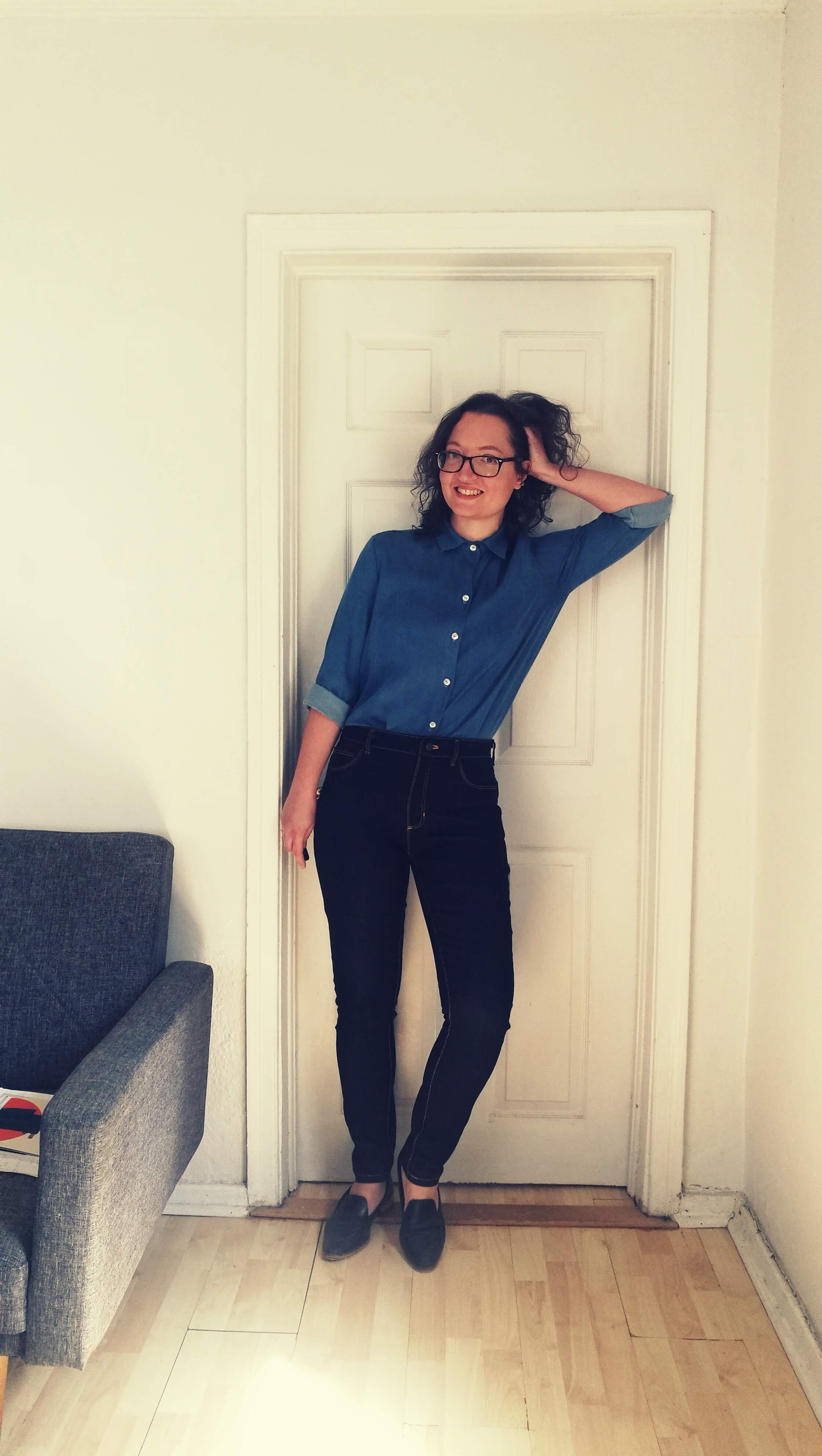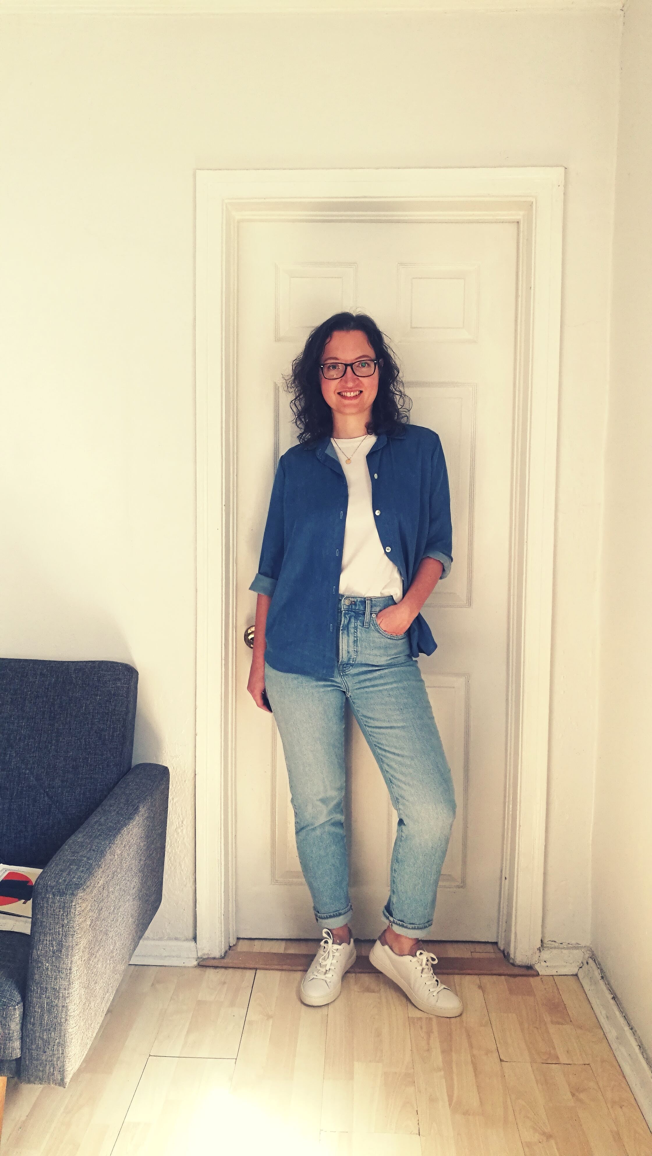 For the pattern I went for the Noa Shirt by the Fabrics-Store, and also in this case I highly recommend it. My experience with their free patterns is very positive. I made at least 5 and they all fit well on me and they come with clear instructions. I made a size 4/6 (my measures are 35-29-39.5”) with only one alteration: I finished the hem with bias binding, and the inside seams are french seams. I opted for these finishes to have a shirt that is nice both inside and outside (with an extra touch of color inside the garment). The fit is slightly oversized, which works very well combined with the tencel chambray. I love making shirts and all the details that come with it so for me it was quite a relaxing project.